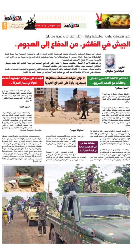 ورغم ذلك، لا يزال الجيش وحلفاؤه يسيطرون بقوة على المواقع الحيوية في مدن الفاشر التاريخية وبعض المناطق المحيطة بها، محققين تقدمًا يوميًا على مختلف الجبهات.