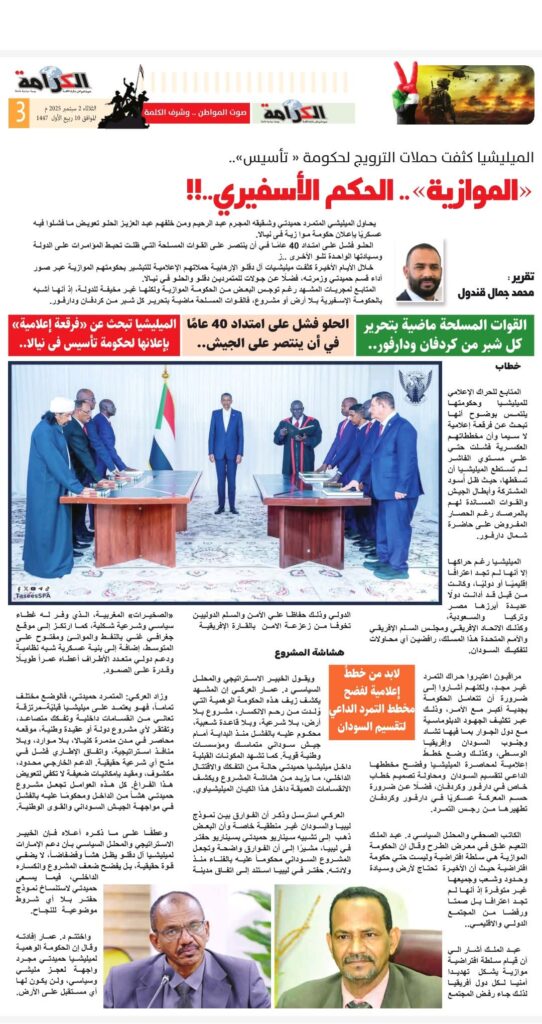 الميليشيا تبحث عن “فرقعة إعلامية” بإعلانها لحكومة تأسيس فى نيالا..