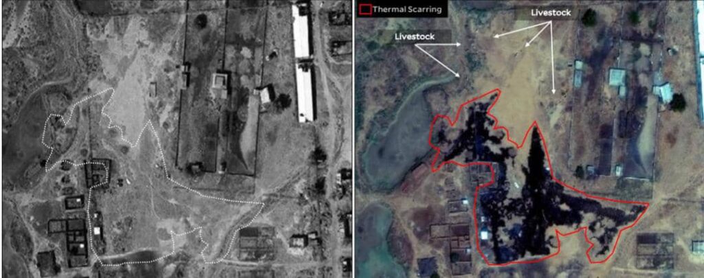 كما استعرض التقرير مقارنة بين مشاهد الدفن قبل دخول قوات الدعم السريع إلى الفاشر وبعد سيطرتها على أجزاء واسعة منها، مشيراً إلى أن الأهالي كانوا يمارسون دفناً إنسانياً طبيعياً وفق الأعراف المحلية، لكن الممارسات التي ظهرت في صور الأقمار الصناعية بعد الهجوم تدل على دفن قسري لا يراعي أي معايير إنسانية، يترافق مع مشاهد لجثث محترقة ووجود رماد كثيف في محيط مواقع الدفن.