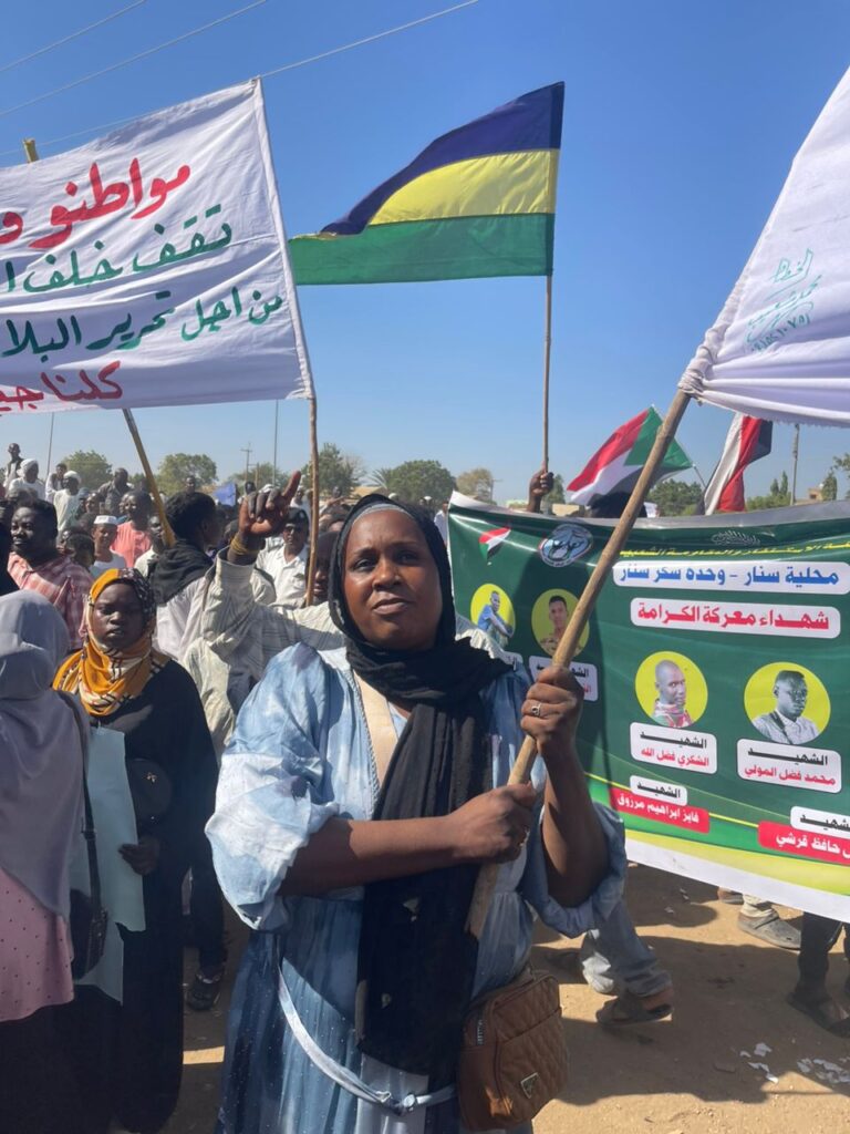 وفي سنار، كما في مدن أخرى بينها سنجة وأبو حجار والدالي والسوكي والدندر ، خرجت تظاهرات حاشدة رفعت الأعلام السودانية وردّد المشاركون فيها هتافات مؤيدة لقيادة الجيش .