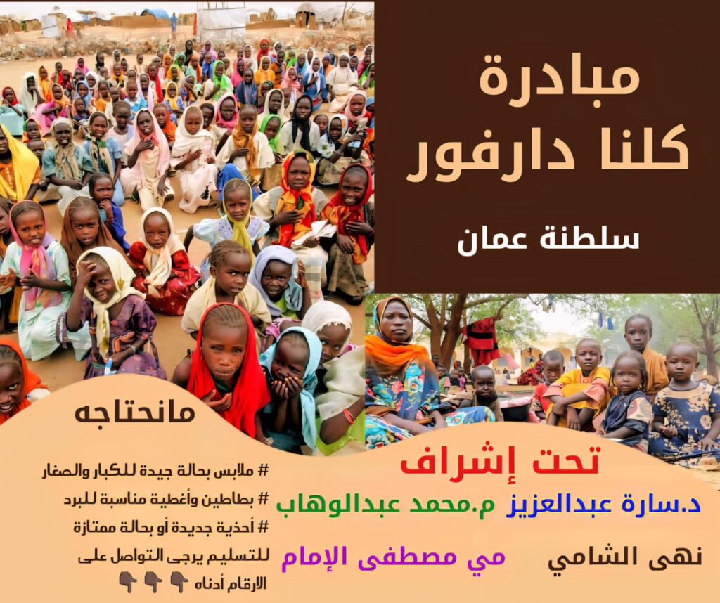 يتواصل في العاصمة العُمانية مسقط تفاعلٌ استثنائي مع مبادرة “كلنا دارفور” التي أطلقها سودانيون مقيمون بالسلطنة، في مشهد إنساني تجاوز حدود الجاليات ليعكس عمق الروابط الوجدانية بين الشعبين السوداني والعُماني، فقد شهدت المبادرة تدافعاً لافتاً من المواطنين العُمانيين، أفراداً ومسؤولين، للمساهمة بالتبرعات النقدية والعينية دعماً للمتأثرين بتداعيات الأحداث الدامية في مدينة الفاشر، التي اجتاحتها ميليشيا الدعم السريع المتمردة، ولا يمكن قراءة هذا التفاعل بوصفه عملاً خيرياً عابراً، بل هو تعبير عن منظومة قيم متجذّرة في الوجدان العُماني، قوامها نصرة المظلوم ومساندة المنكوب، واستحضارٌ صادق لمعنى الحديث النبوي الشريف: (مثل المؤمنين في توادّهم وتراحمهم وتعاطفهم كمثل الجسد الواحد إذا اشتكى منه عضوٌ تداعى له سائر الجسد بالسهر والحمى…)، حيث بدا واضحاً أن ما يعتصر الفاشر من ألم، تتردد أصداؤه في مسقط، وتبكي لمأساته صلالة، وتسعى لمواساته صحار وبوشر.