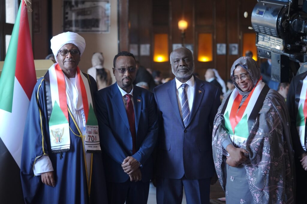 احتفلت سفارة جمهورية السودان لدى دولة إريتريا، بالعاصمة أسمرا، بالذكرى السبعين للاستقلال، وذلك برعاية وتشريف وزير الإعلام “يماني قبرمسكل” ممثلاً للحكومة الإريترية، وبحضور عدد من الوزراء وقيادات الحزب الحاكم بالبلاد، وعدد كبير من قادة الخدمة المدنية والمنظمات والمنظومات والكيانات الشبابية والفئوية، إلى جانب مشاركة رسمية ودبلوماسية وثقافية ومجتمعية واسعة، وأضفت مشاركة وزير المالية والتخطيط الاقتصادي الدكتور جبريل إبراهيم، ووزير الثقافة والإعلام والسياحة الأستاذ خالد الإعيسر، المناسبة ألقاً خاصاً يحكي عن تناسق واتساق بين مكونات حكومة الأمل في الداخل والخارج، ونشير إلى الاحتفالية نُظِّمت تحت شعار: (استقلالٌ يتجدد… ووطنٌ لا يغيب)، في تأكيد رمزي على استمرارية الدولة السودانية وقدرتها على تجاوز المحن والتحديات.