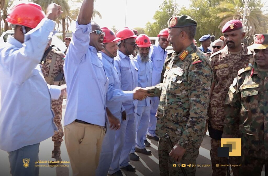 البرهان طاف على أقسام المصفاة والتقى بعددٍ من فرق العمل من المهندسين، حيث استمع لتنويرٍ ضافٍ من مدير المصفاة، حول المجهودات التي يقوم بها الفريق الفني في تقييم الخسائر والأضرار ومعالجة بعض المشكلات.