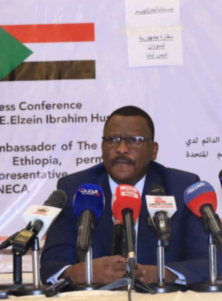 وشدد السفير الزين في خطابه على ضرورة إعادة ارتباط السودان بالمؤسسات الأفريقية لمواكبة جهود تحقيق الاستقرار، مستعرضاً تطورات الأوضاع في البلاد، ومقدِّراً في الوقت نفسه مواقف مجلس السلم والأمن والأفريقي الداعمة لموقف الحكومة السودانية من خلال بيان المجلس السلم الصادر في 11 مارس الماضي، الذي أدان محاولات مليشيا الدعم السريع والقوى السياسية الموالية لها المدعومة من الإمارات وبعض دول الإقليم، لإقامة نظام حكم موازٍ يهدد وحدة السودان واستقراره، ونوه السفير الزين إلى زيارة مجلس السلم والأمن الأفريقي إلى بورتسودان في أكتوبر 2024م، داعياً إلى تنفيذ توصيات المجلس، وعلى رأسها إعادة فتح مكتب الاتحاد الأفريقي في السودان، وأعلن السفير عن ترحيب السودان بإنشاء اللجنة الأفريقية رفيعة المستوى برئاسة محمد بن شمباس.